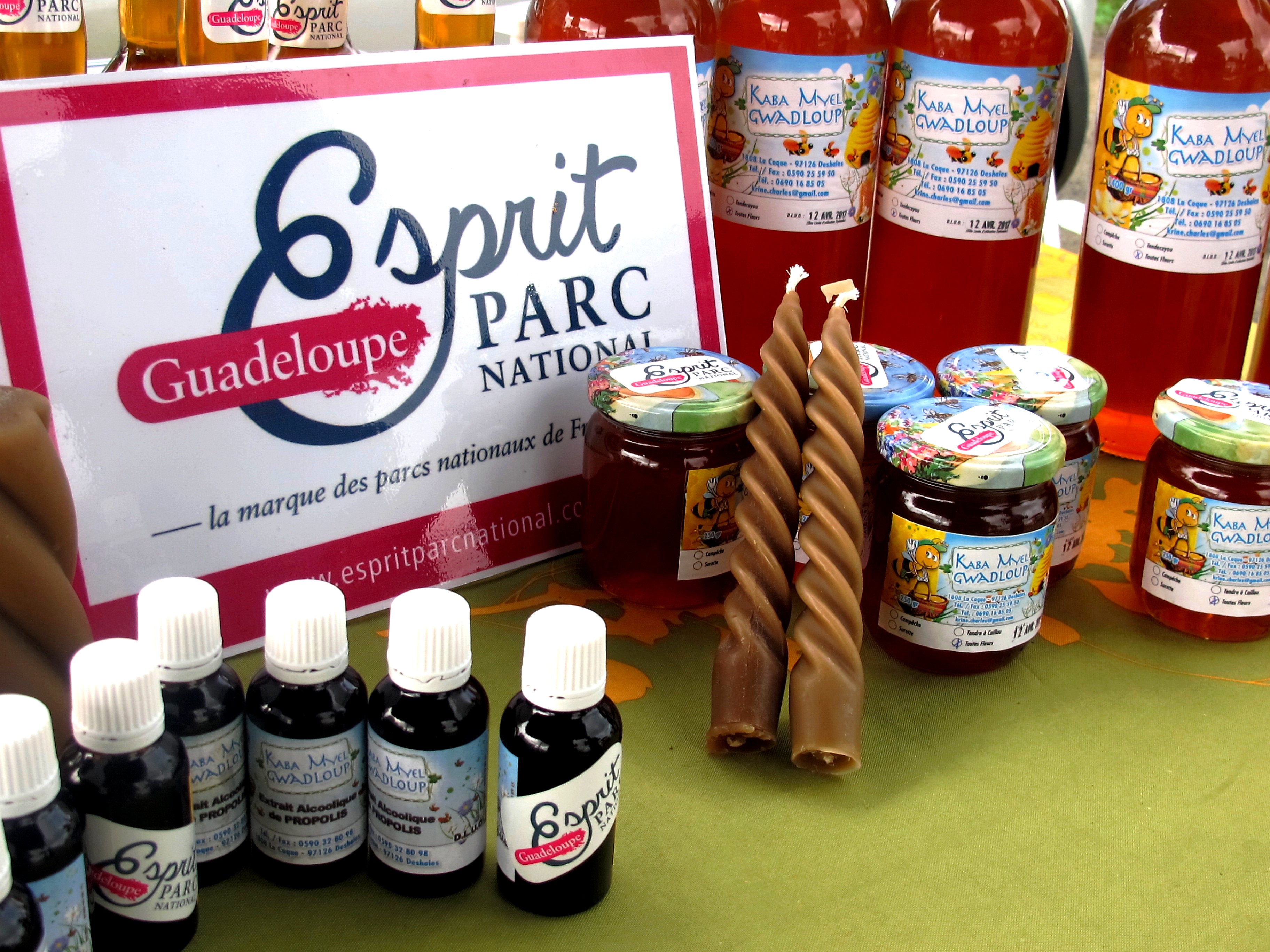 KABA MYEL GWADLOUP propose plusieurs produits de la ruche. Le miel est vendu sous différents volumes, le gâteau de miel en rayon en barquette, la propolis en solution alcoolique.